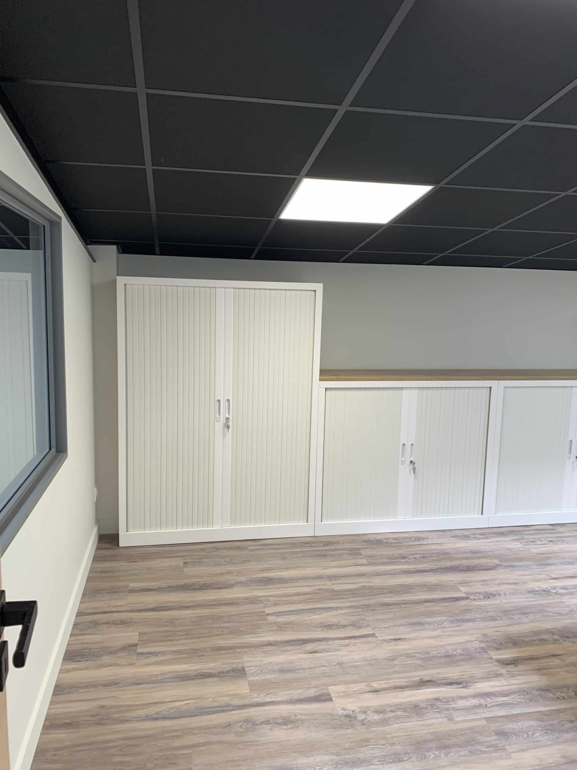 Installation d’un ensemble d’armoires blanches monobloc rideau pour un de nos clients à ARNAS.