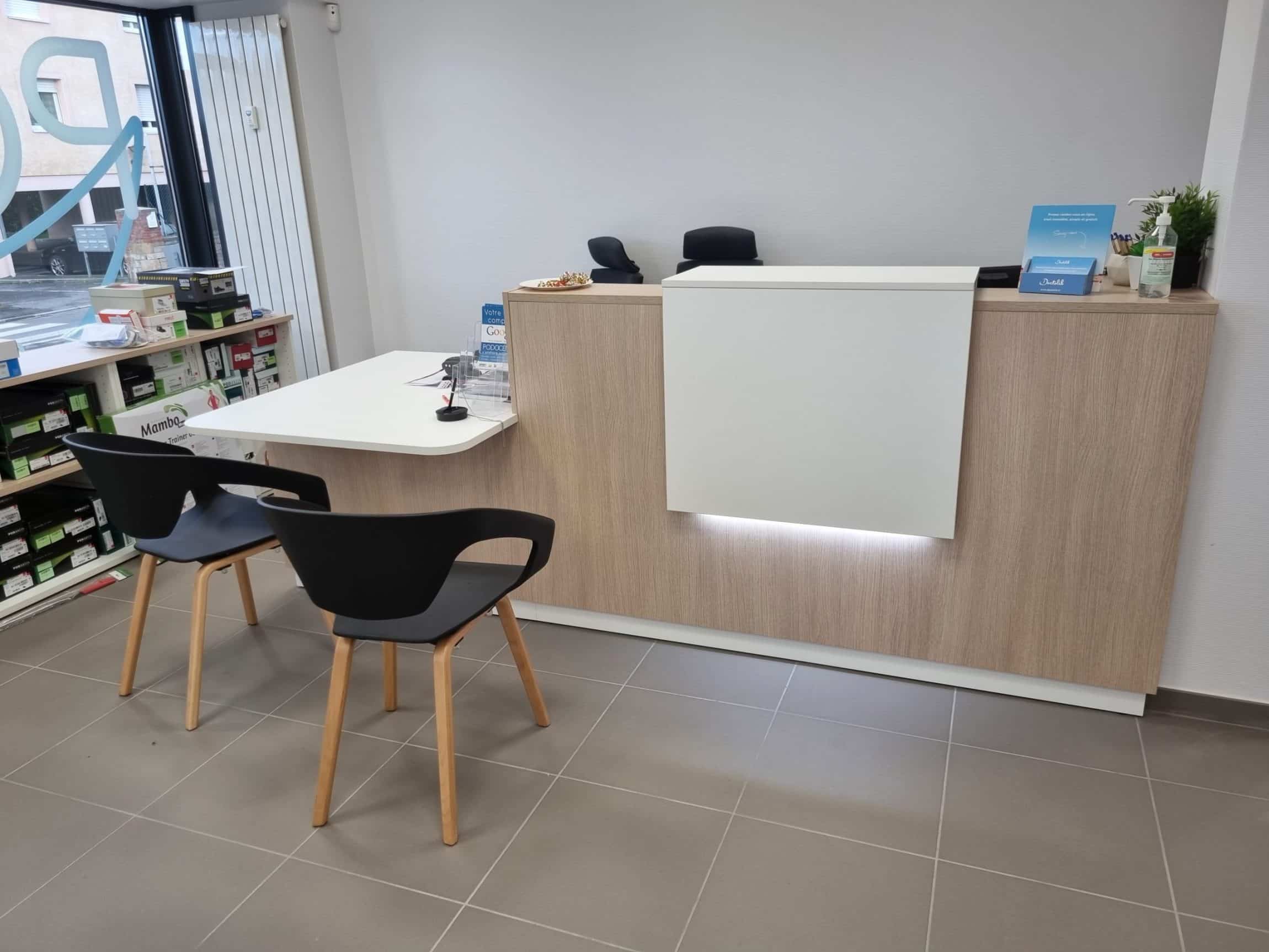 Suite aux visites de Pierre VILLARET et les différents rendez-vous effectués pour connaître les besoins du client, APV Bureau a su les satisfaire en montant, livrant et installant une banque d’accueil lumineuse et des chaises visiteurs à l’entrée du local des clients.